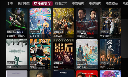 在电视上打开从官方渠道下载的 “小苹果影视盒子”,进入主界面后,可直接看到平台划分的多个内容分类,包括热门电影、热播剧集、综艺娱乐、动漫卡通等,分类标签通常位于界面顶部或左侧导航栏。