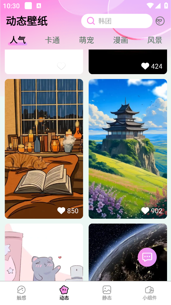 3、还可以进行动态壁纸和静态壁纸页面选择并打开喜欢的资源。