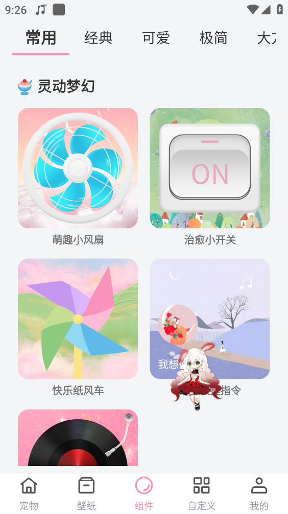 3、萌趣模块,为小组件模块,可直接添加到手机桌面。部分手机需要采用在桌面双指捏合的方式。