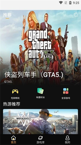 3、首页可以查看热门推荐、无限畅玩、特惠时长、全部游戏版块。