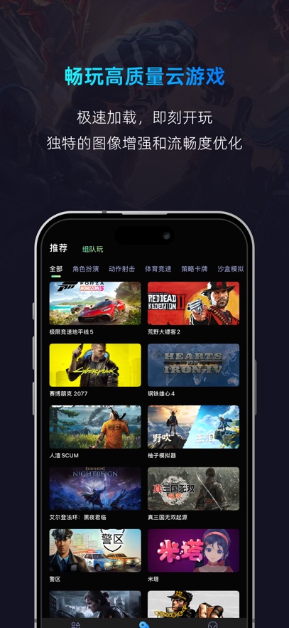 3、涵盖云电脑、pc游戏、手游这三个分区,进入即可找到喜欢的游戏。