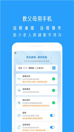 2、支持手机控手机 / 电脑、电脑控手机,需被控端授权,可随时中断连接。