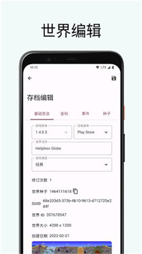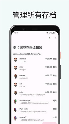 泰拉瑞亚存档编辑器1.4.4.9,泰拉瑞亚手游玩家必备的辅助工具,能够帮助对游戏存档进行深度编辑。支持对人物角色的多种属性进行修改,包括生命值、魔法值、装备属性等,可以通过它轻松打造出符合自己期望的角色。具备对游戏世界数据的编辑能力,比如修改地图中的物品分布等,提供丰富的游戏体验。大量功能选项,只需按照提示进行操作,即可轻松完成存档的编辑。支持对存档名称进行自定义,方便管理和区分不同的存档。