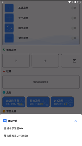 2、在【推荐准星】一栏还有各种不一样的准星,如果没有喜欢的,你也可以自定义diy设置。