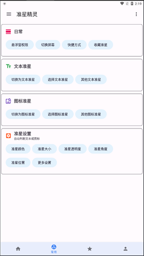 准星精灵和平精英无需复杂的设置即可快速开启准星辅助功能,即使在收枪状态下,准星依然会显示在屏幕中央,为玩家提供持续的瞄准支持。准星精灵和平精英版还支持快速添加游戏快捷方式,玩家可以一键启动游戏并开启准星辅助,大大节省了操作时间。