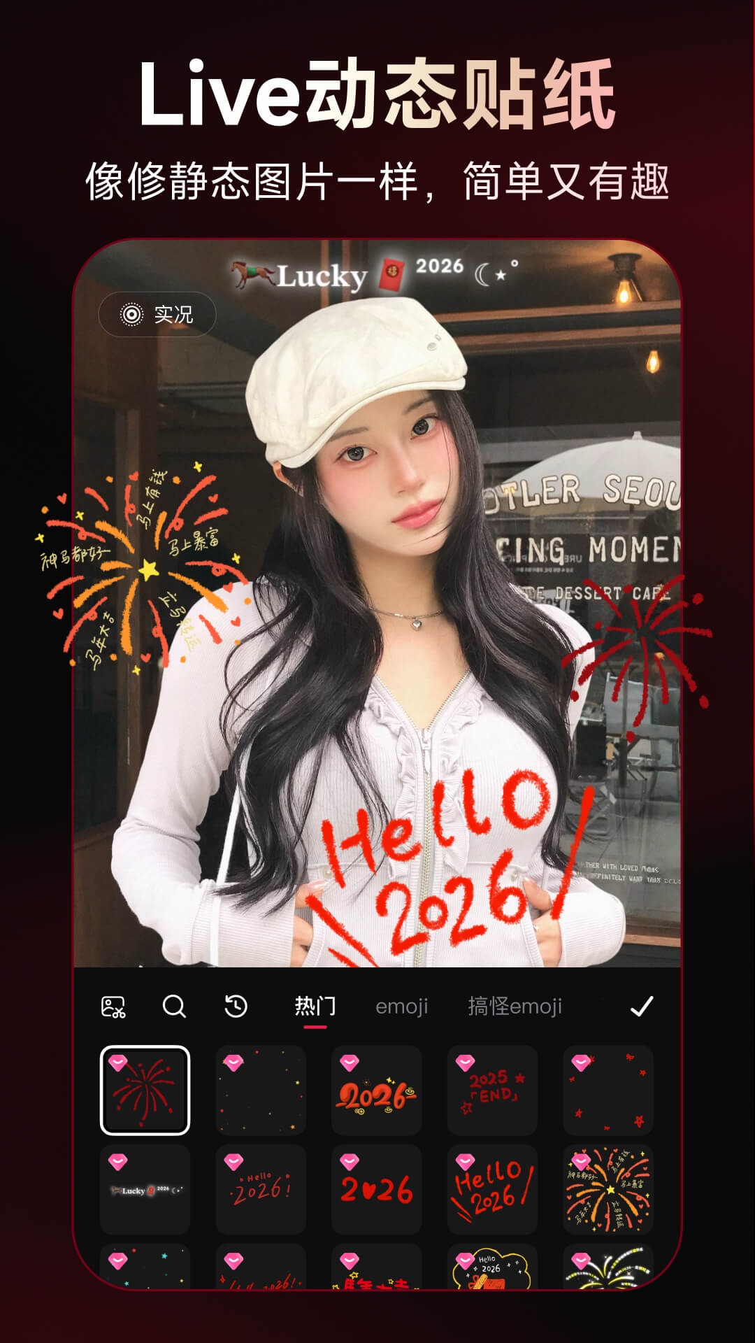 3、拥有海量的边框、贴纸和饰品,如发卡、眼镜等,用户可以为照片添加趣味装饰,丰富画面。