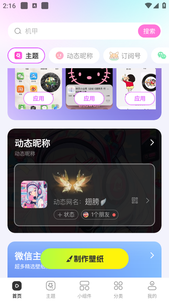 主题秀秀,手机桌面美化的个性化工具,提供海量涵盖风景、动漫、明星等多元领域的壁纸与主题资源,每日更新热门内容。不仅可以便捷选用丰富素材,还能通过自定义编辑与多样小组件的添加,自由打造独特的手机桌面效果。
