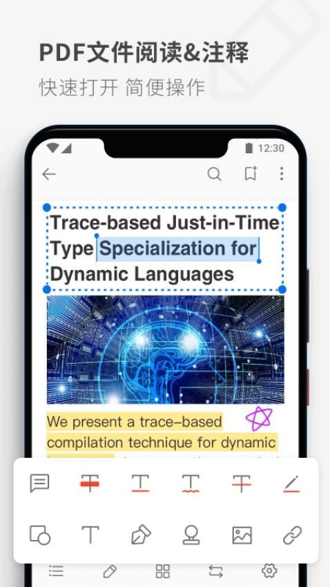 PDF Reader安卓版的语音朗读功能表现非常自然流畅,能够准确识别中文与英文混排的文档内容并朗读出来。它还可以将多个PDF文件合并成为一个全新的文档,甚至能够添加自定义文字或图片水印,让文件显得更专业更安全。这一系列的贴心设定旨在全方位地满足不同用户群体的多样化使用需求,以此最大程度地帮助用户提高工作和学习的效率。