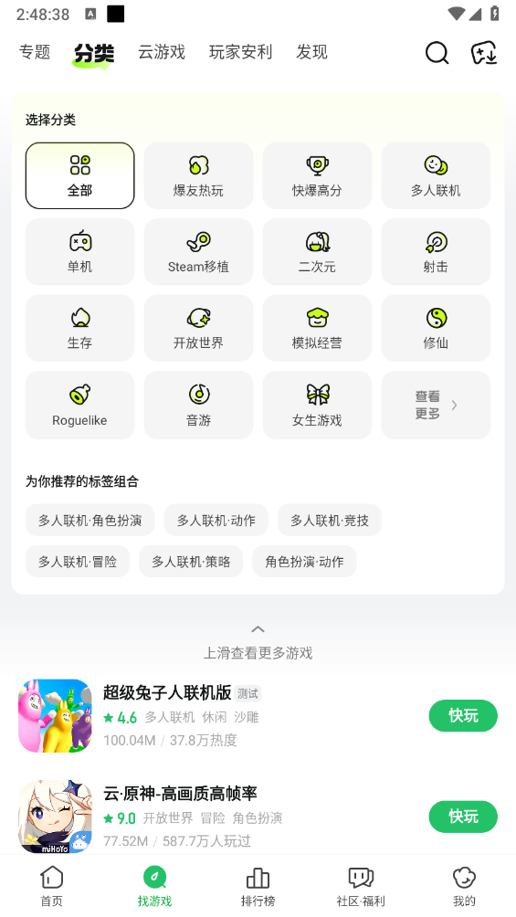 2、还可以进入"游戏"板块根据标签进行选择。