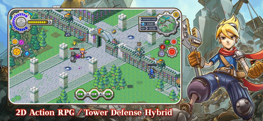 洛克的冒险,也叫作洛克的任务,原名为Lock's Quest,像素风格的RPG策略游戏。玩家需要在12个独特地图上开始魔性的战斗,记得快速布置好炮塔,以及陷阱,这样才能成功挡住敌人,并且还能使用技能直接将其消灭,过关后能够得到丰厚的奖励,当然游戏角色特别多,都能轻松搭配一下。