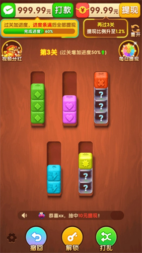 1、道具分别是撤回、解锁、打乱,其作用都不同,可以直接了解清楚再去使用。