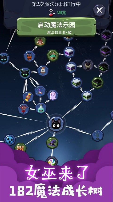 女巫来了是一款主打轻松放置的休闲游戏,适合利用碎片时间游玩,无需复杂操作,解放双手享受成长的乐趣。游戏中每次升级都能显著提高攻击输出,使你能更高效地击退更强、更多的捣蛋鬼。除了提升基础能力,你还需要在魔法书中研究各种糖果和魔药的独特配方,研究成功后,可以将其应用到战斗中,使特定攻击效果翻倍。当你的实力足够强大,可以启动传说中的魔法乐园。