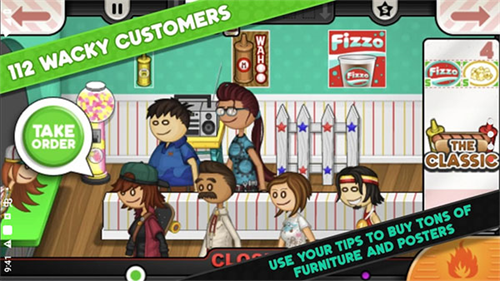 老爹热狗店采用经典的卡通画风,设有严格的时间管理机制,需要在有限的时间内完成各种任务,这不仅考验快速反应能力。在游戏中需要完成从前台接单、厨房制作、调配配料到客户服务的全流程操作,每一个环节都至关重要,精心安排和高效执行。