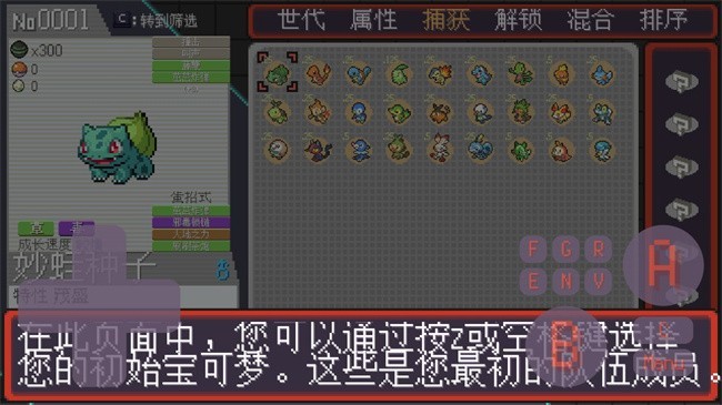 2、一开始玩家有10个指数点,根据需求来选择宝可梦,后续玩家抓的宝可梦也会点亮上面的图鉴。