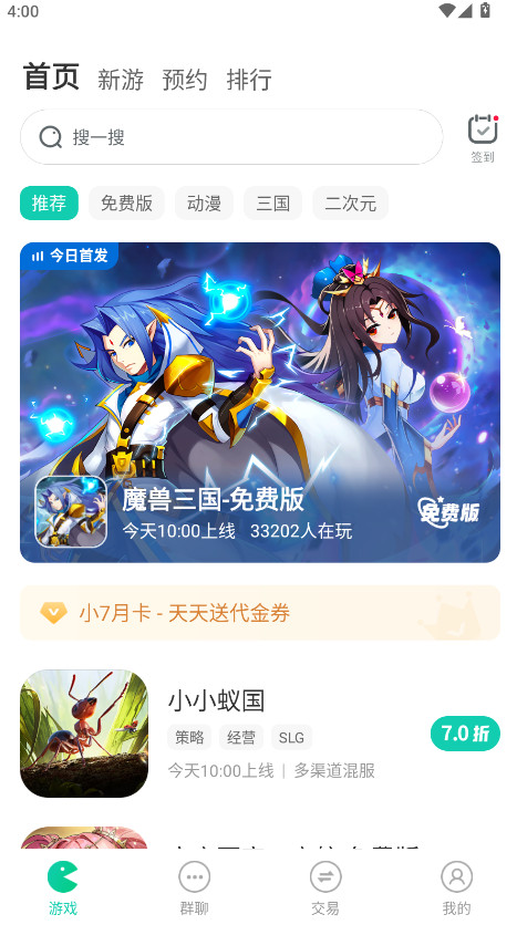 小7手游app,是专业可靠的折扣手游平台,专注于为玩家提供实实在在的充值折扣和福利,玩热门游戏都能享受超值优惠。平台还整合了及时的游戏开服信息、一键领取的丰富礼包,以及便捷的充值返利体系,让每一位玩家都能用更少的钱,获得更好的游戏体验。