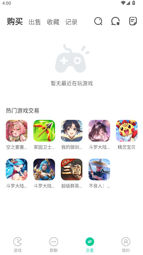 2、然后在交易页面选择"出售"。