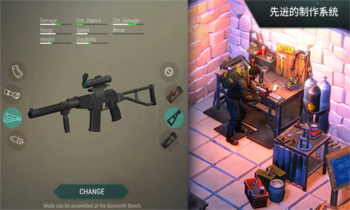 Lastdayonearth狗在传统生存框架上创新地加入了多维度成长体系,例如通过完成港口船长或电锯大叔的协作任务获取稀有蓝图,解锁从简易弓弩到火焰喷射器等近百种可改装武器,同时玩家需掌握资源循环利用技巧,将废弃零件在维修台转化为实用装备,其多人交互不仅限于组队挑战地下城BOSS,更可在“弹坑”主城组建氏族参与领土争夺战。