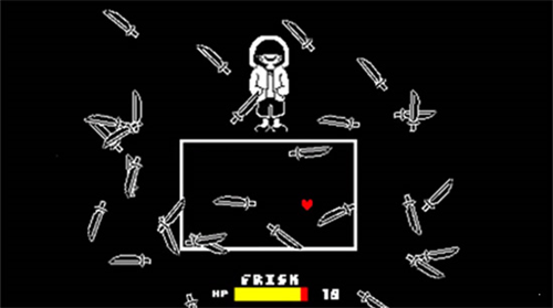 3、面临Papyrus的龙骨炮、Sans的骨头矩阵以及Chara的飞刀协同攻击,极具挑战。
