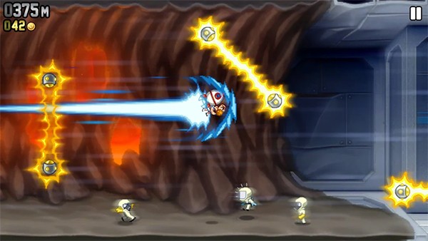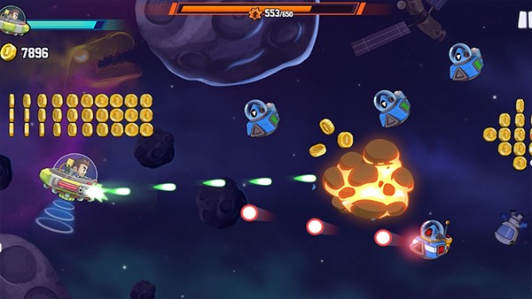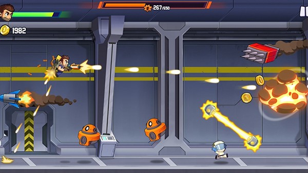 3.收集金币可解锁升级喷气背包与载具,强化子弹威力、飞行速度等核心属性,助力突破更高难度关卡,挑战更远飞行距离。