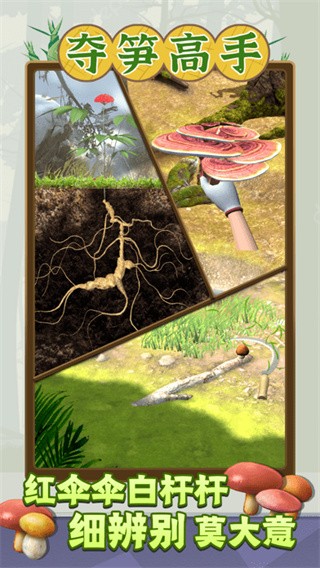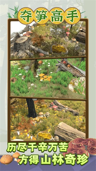 2、目标是探寻并收集各种山珍,包括但不限于竹笋、草药、菌菇、野果等具有价值的自然产物。