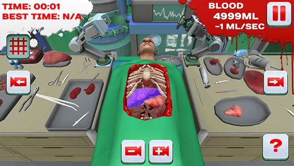 2、游戏玩法是对躺在手术台上的虚拟病人进行手术,目标是解决其特定的健康问题,如摘除肿瘤、移植器官。