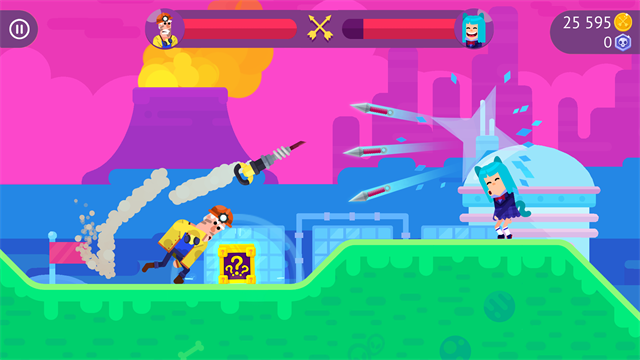 2、对战玩法为回合制投掷攻击,玩家通过调整角度与力度,操控角色投掷武器命中敌方,率先将对手生命值清零即可获胜。