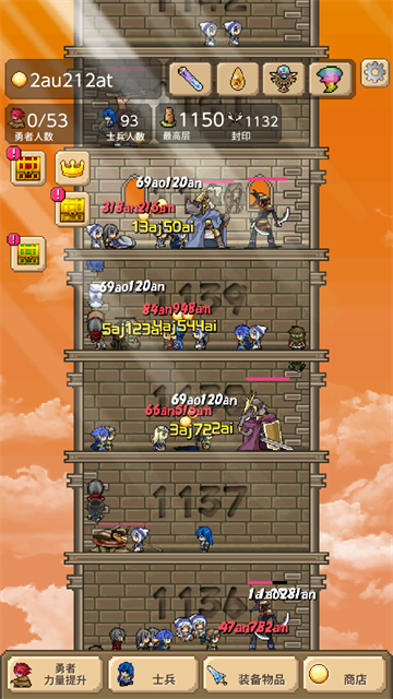 3、购买装备,我们是一定要给自己的小人购买装备的,比如奋斗药水等等,这样玩家才能快速的获得这些攻击的胜利,不然可能一个楼层玩家需要刷很久很久,这样就很烦躁了。