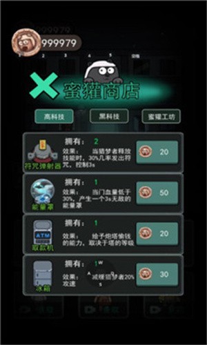 3、提供倒刺、能量罩等,门受攻击时可反伤猛鬼或触发短暂无敌护盾保护自身。