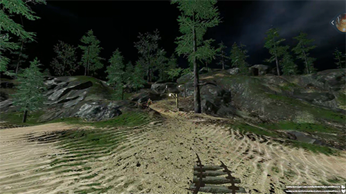 第二步:通过地图标记(蓝色为当前位置,绿色为目标点)前往山上小屋,获取开门钥匙。