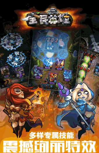 2、画面极具辨识度,浮雕式卡牌设计搭配绚丽技能特效,关卡场景风格各异,视觉体验独特。