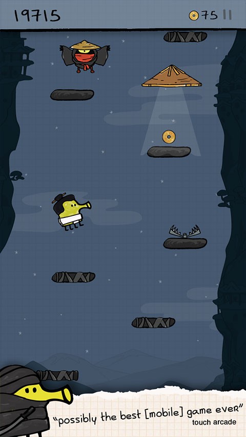 涂鸦跳跃是一款广受欢迎的垂直平台休闲解压游戏。游戏场景丰富多变,玩法新颖有趣,玩家操控一个可爱的手绘涂鸦风格小怪物闯关。游戏采用直观的重力感应和触控操作,通过倾斜设备来控制角色左右移动。玩家的目标是让涂鸦小怪物不断向上跳跃,踩踏一个个随机生成的平台。在跳跃过程中,必须小心避开地面上随机出现的黑洞,空中还会出现快速移动的不明飞行物。游戏中会随机出现大量的道具,为游戏增添变数和乐趣。不同的道具有不同的功能,护盾可以暂时保护角色免受一次怪物的伤害。