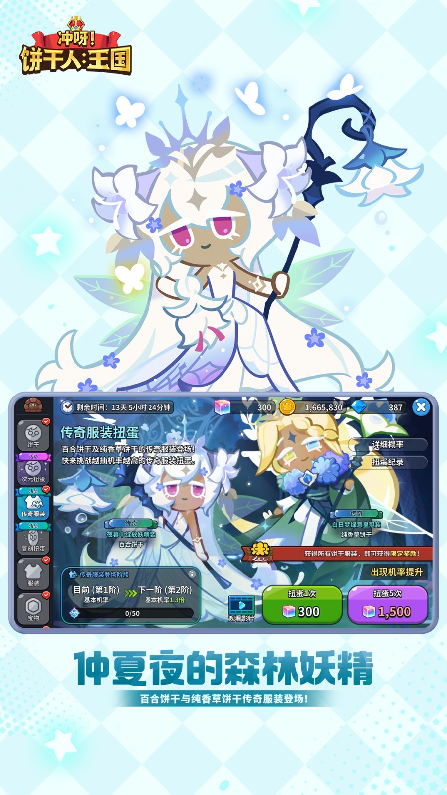 10、另外,冲呀饼干人王国游戏中提供了丰富的饼干角色,玩家可以在扭蛋中抽取各种稀有的角色来帮助你战斗,同时还可以抽取各种服装、宝物哦