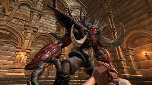 4.Boss半血时会将头部保护住,广场上开始刷出大量自爆兵,空中出现两台息肉直升飞机,解决掉杂兵后才可以继续攻击Boss。搞定触手怪以后,萨姆进入梵蒂冈教廷寻找文本,虽然忘了神父的提示,但萨姆还是靠自己的办法找到了文本。
